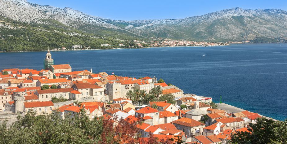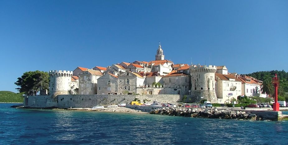 Korčula is an island in the Adriatic Sea, in the Dubrovnik-Neretva County of Croatia. The island has an area of 279 km2 (108 sq mi); 46.8 km (29.1 mi) long and on average 7.8 km (4.8 mi) wide — and lies just off the Dalmatian coast. Its 16,182 (2001) inhabitants make it the second most populous Adriatic island after Krk and the most populous Croatian island not connected to the mainland by a bridge.