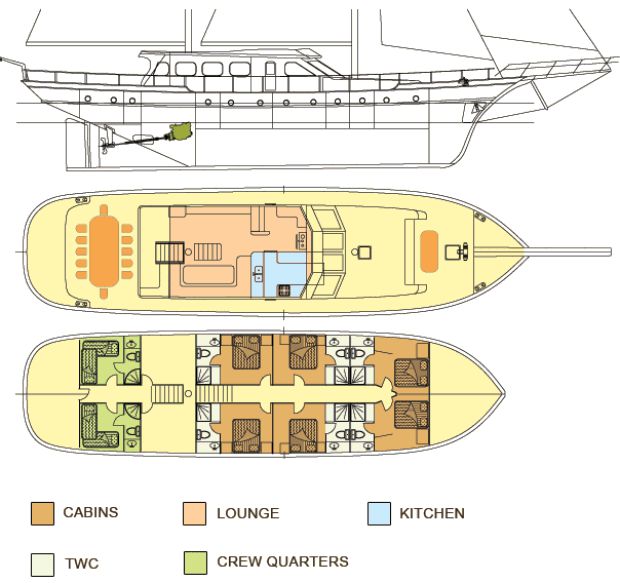 Aurum gulet is luxuriously equipped for Mediterranean and Adriatic cruising. The gulet has 6 fully equipped cabins for 12 guests. The captain, cook and two sailors are always at your disposal; they do their best to make your cruising memorable.